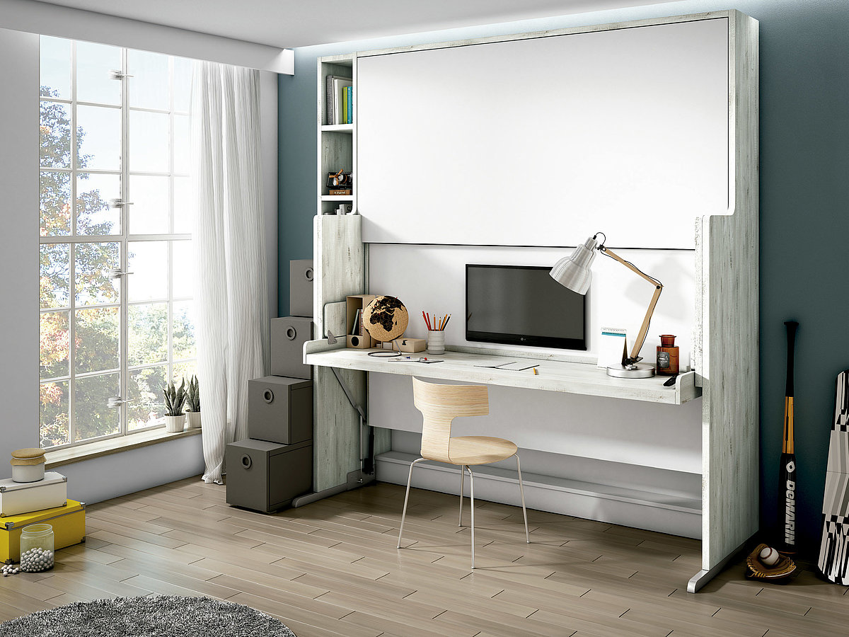 Las camas mesa consiguen que un escritorio y un somier ocupen el mismo espacio en una habitación. De esta manera, conseguirás, no solo ahorrar espacio, sino ofrecer la sensación de que las dimensiones de un cuarto son lo suficientemente grandes como para que un adolescente puedan estar allí sin miedo a que esté agobiado o incómodo.